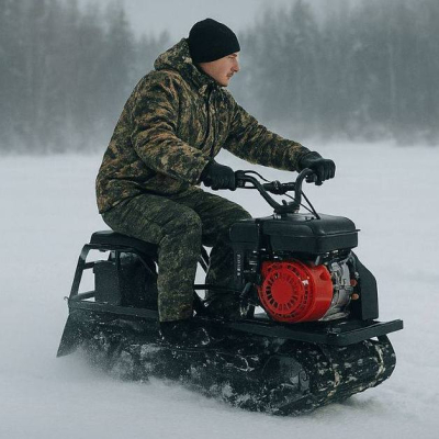 Фактически, это «мини-тягач» с гусеничным приводом: тянет сани, грузы и легко идёт там, где обычная техника буксует — по глубокому снегу, грязи, песку и бездорожью.